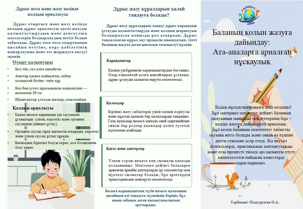Баланың қолын жазуға дайындау: Ата-аналарға арналған нұсқаулық